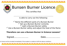 Bunsen burner with labels